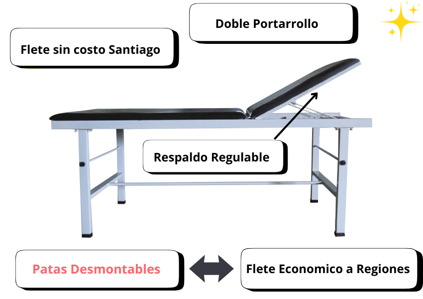 Estructura desarmable, menor costo de flete, transportable, fácil de guardar. Esta camilla ofrece la máxima calidad, economía y confort para:
