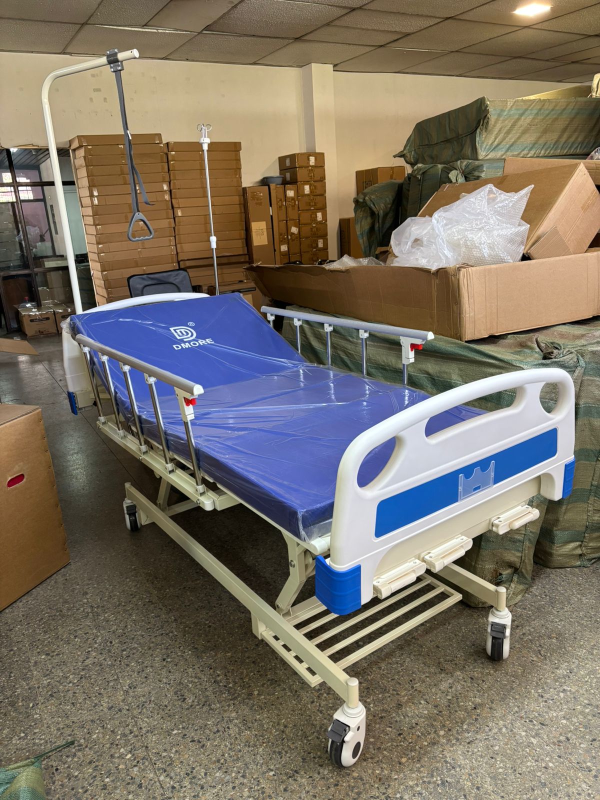 Cama en acero con terminación esmaltada y pintura electrostática anti bactericida con doble capa.