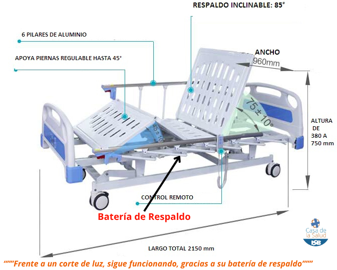 • Batería de respaldo incorporada, en caso de corte de luz. Se corta la energia y el catre sigue funcionando igual