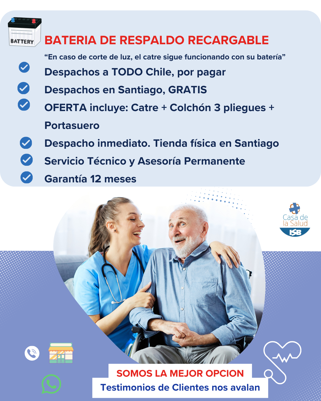 - Porque llevamos mas de 10 años en el mercado vendiendo catres clínicos y conocemos muy bien el producto y la factibilidad de fallas y las soluciones.