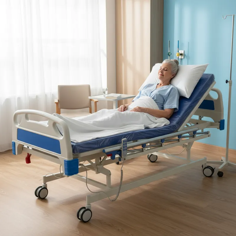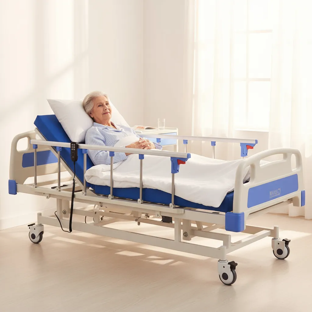 Este catre eléctrico de cuatro posiciones va más allá de lo convencional. Con solo presionar un botón, el paciente puede ajustar el respaldo, las piernas, la altura y la posición combinada de forma silenciosa y fluida. Este control total no solo alivia la presión y previene escaras, sino que también le da al paciente la autonomía que tanto valora. Las barandas laterales, fabricadas con materiales duraderos, ofrecen un punto de apoyo y una protección adicional, eliminando la preocupación de posibles caídas. Además, el porta suero integrado y el colchón de 3 pliegues de alta densidad aseguran que cada necesidad de cuidado sea cubierta con la máxima comodidad.