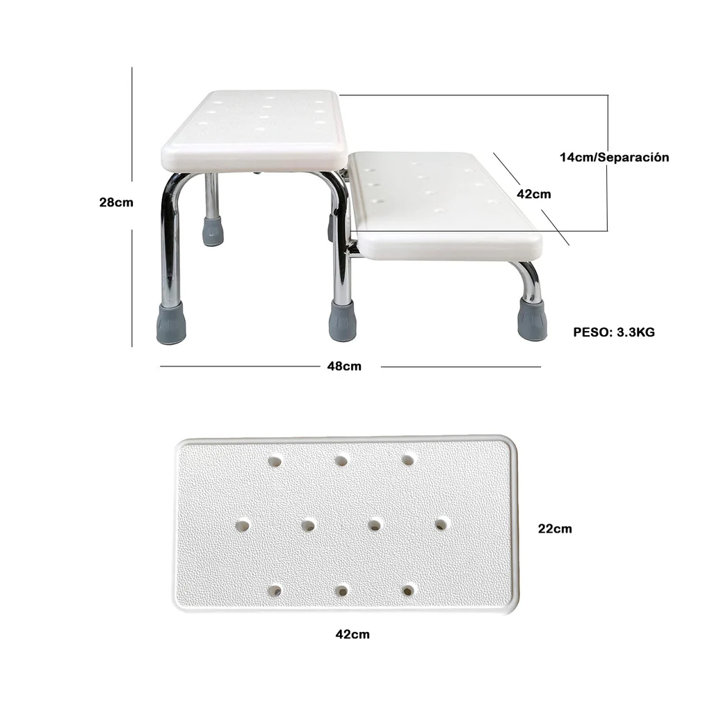 JL569 es un modelo de escabel multiuso y especialmente diseñado para el baño, diseñado con dos paneles de asiento de poliuretano que se pueden utilizar como escalera para pasar a la tina.