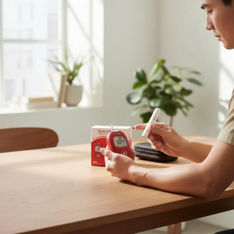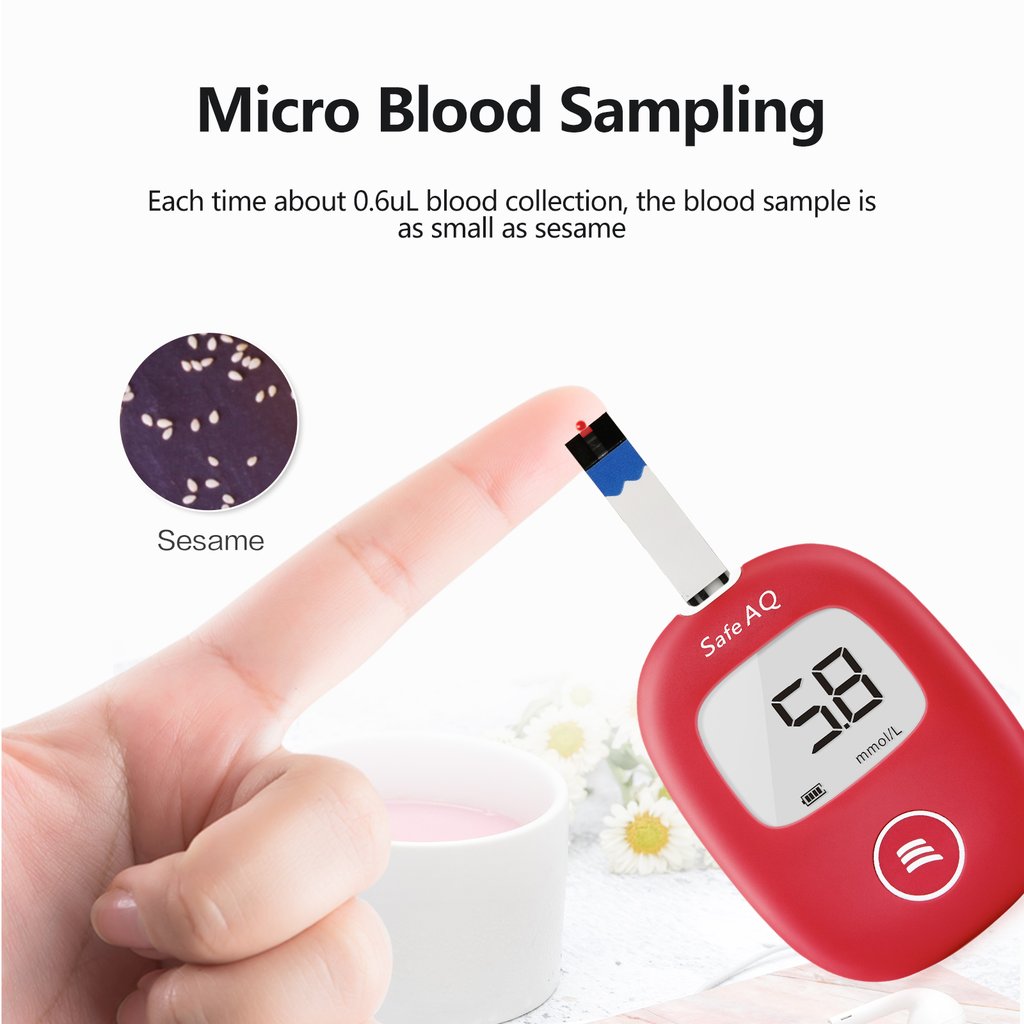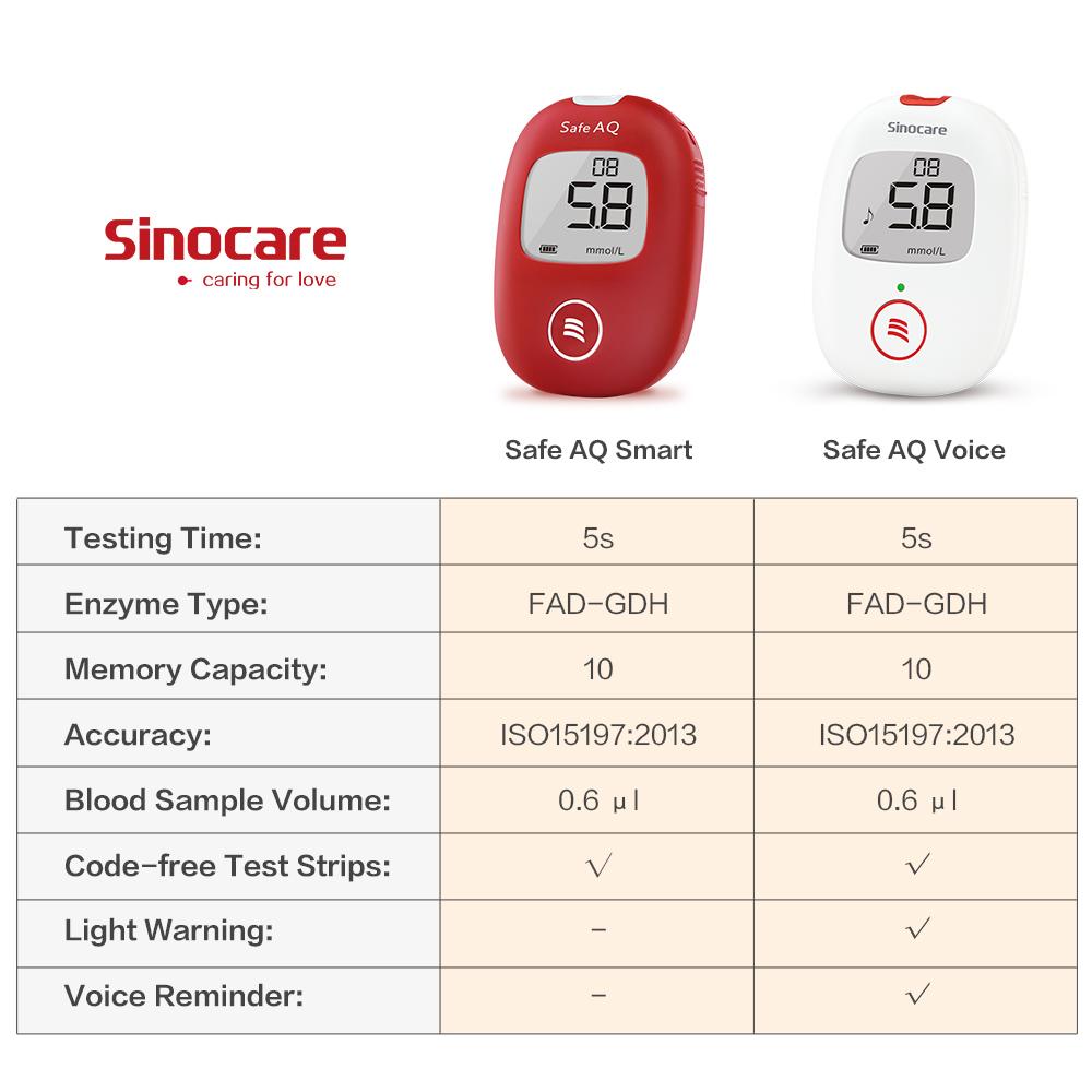 Medición de glucosa en sangre SINOCARE, modelo Safe AQ.