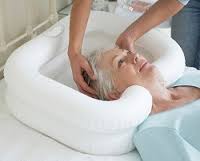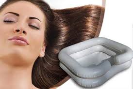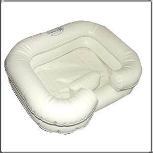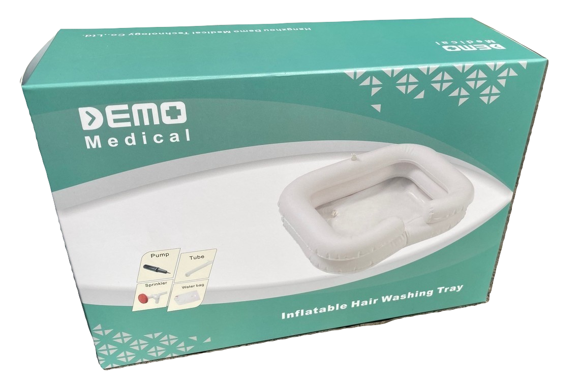 Bandeja inflable de material polietileno alta densidad, con apoya cabeza, ideal para el lavado del cabello de personas con alguna discapacidad y para uso directo en el hogar.