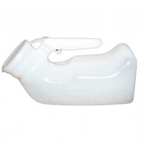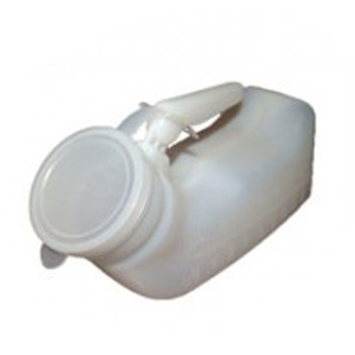 Pato urinario cuello corto, con asa y con tapa