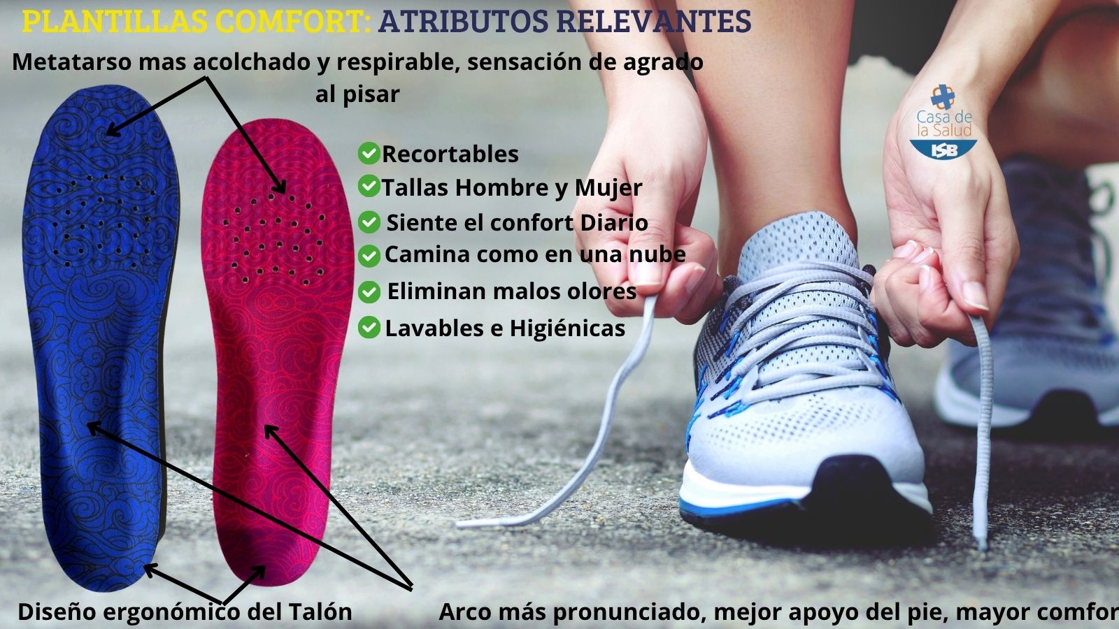 Absorben el impacto al correr y caminar, minimizando el dolor y relajando los músculos del pie. Para uso continuo, durante todo el día.