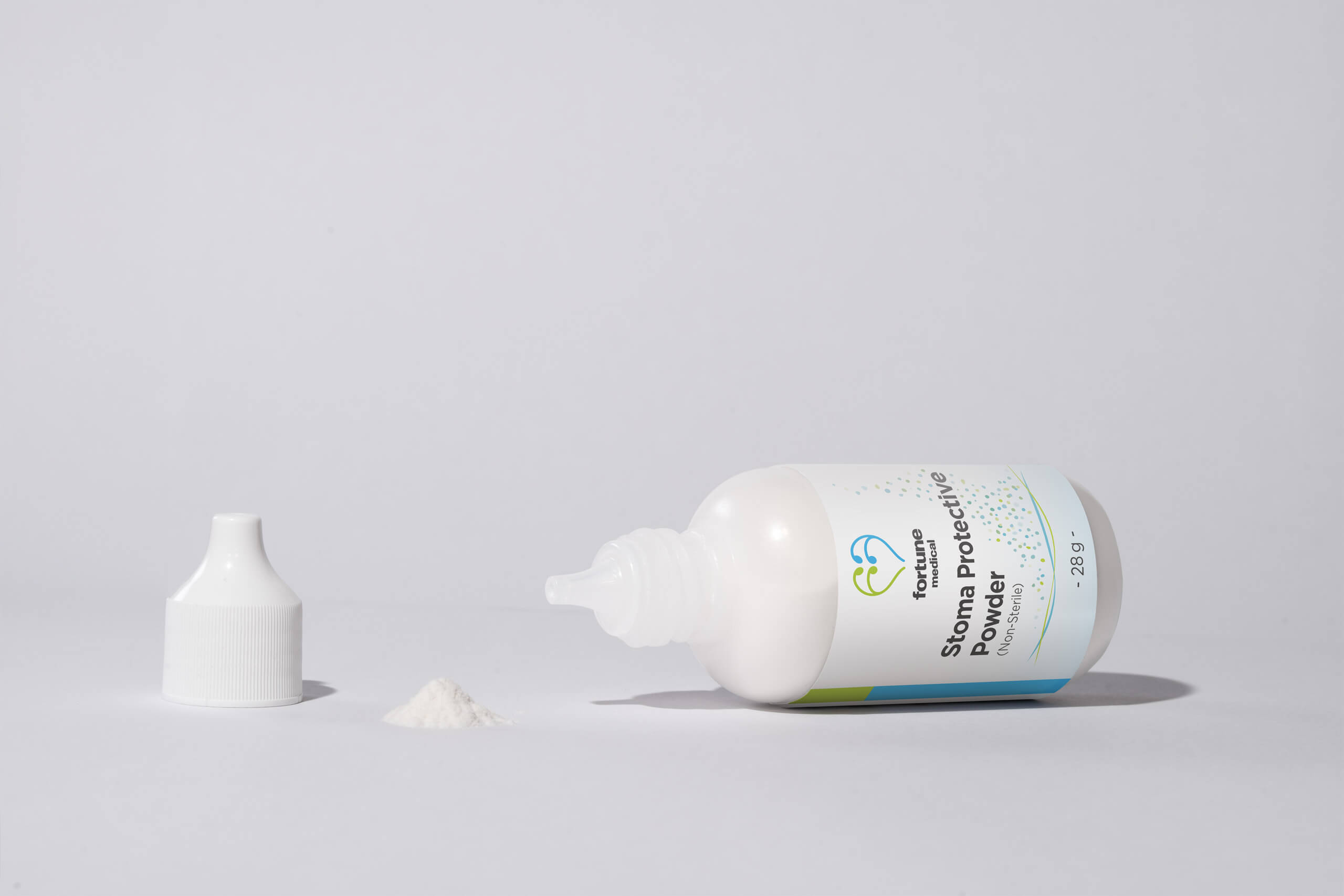 El polvo protector para estomas es un producto a base de hidrocoloide que absorbe la humedad alrededor del estoma, crea una barrera protectora contra irritaciones, y mejora la adhesión de la bolsa de ostomía, ideal para pieles húmedas o dañadas, facilitando la curación y prolongando la vida útil del adhesivo. Se aplica una capa fina sobre la piel limpia y ligeramente húmeda, se retira el exceso, y se forma una "costra" que permite que el adhesivo se adhiera mejor, usando técnicas como la "crusting".