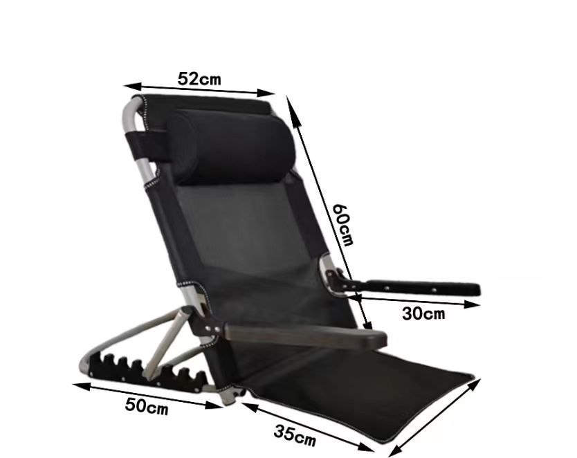Respaldo cómodo de descanso, apoya brazos abatibles, portátil plegable, con regulación de la inclinación, para usar de apoyo sobre la cama, piso, jardin, playa o sobre otras superficies. La estructura fabricada en aluminio, con un sistema seguro y de fácil de regulación.