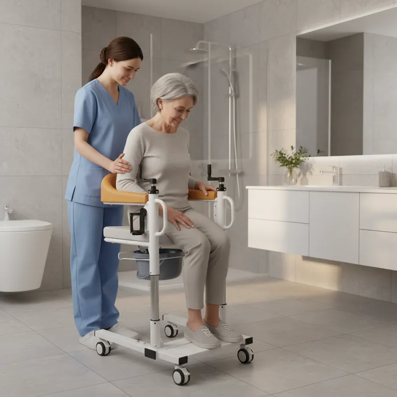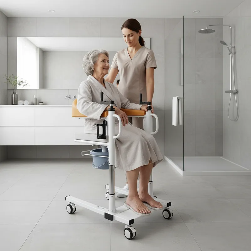 Equipada con mecanismos de ajuste de altura, facilita la movilidad hacia áreas cotidianas como la cama, sillones, baños, etc.