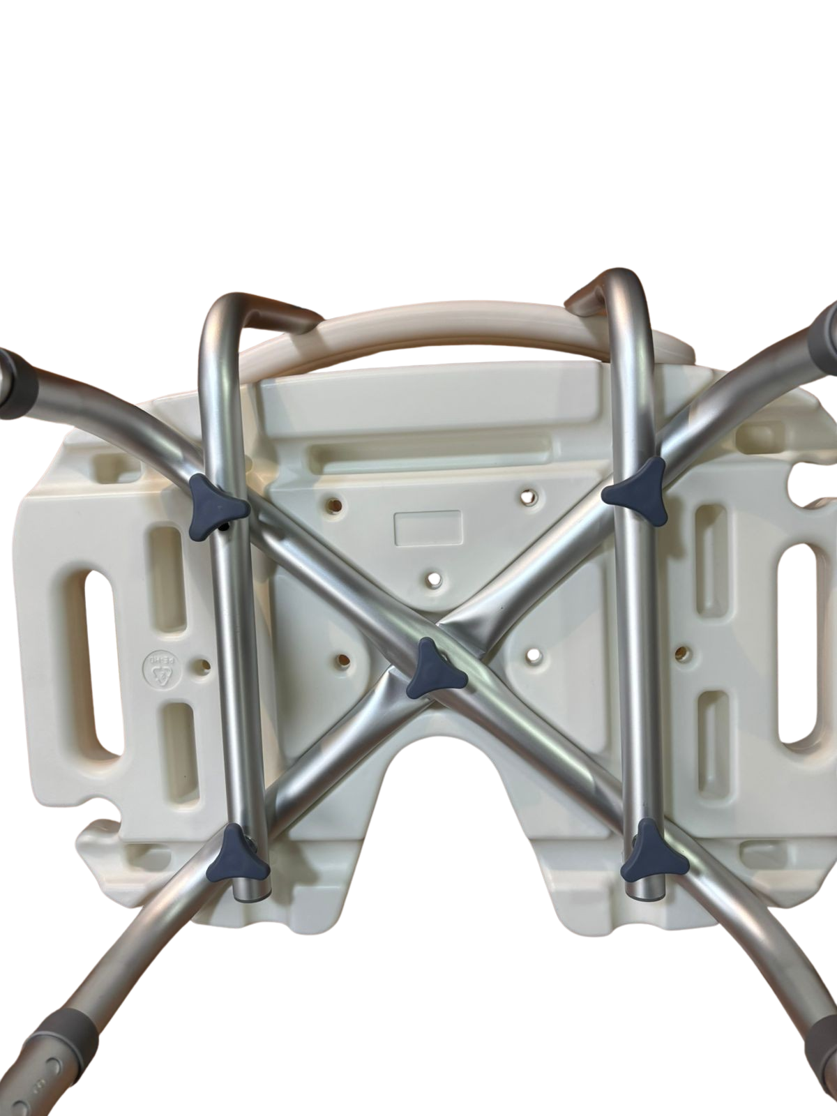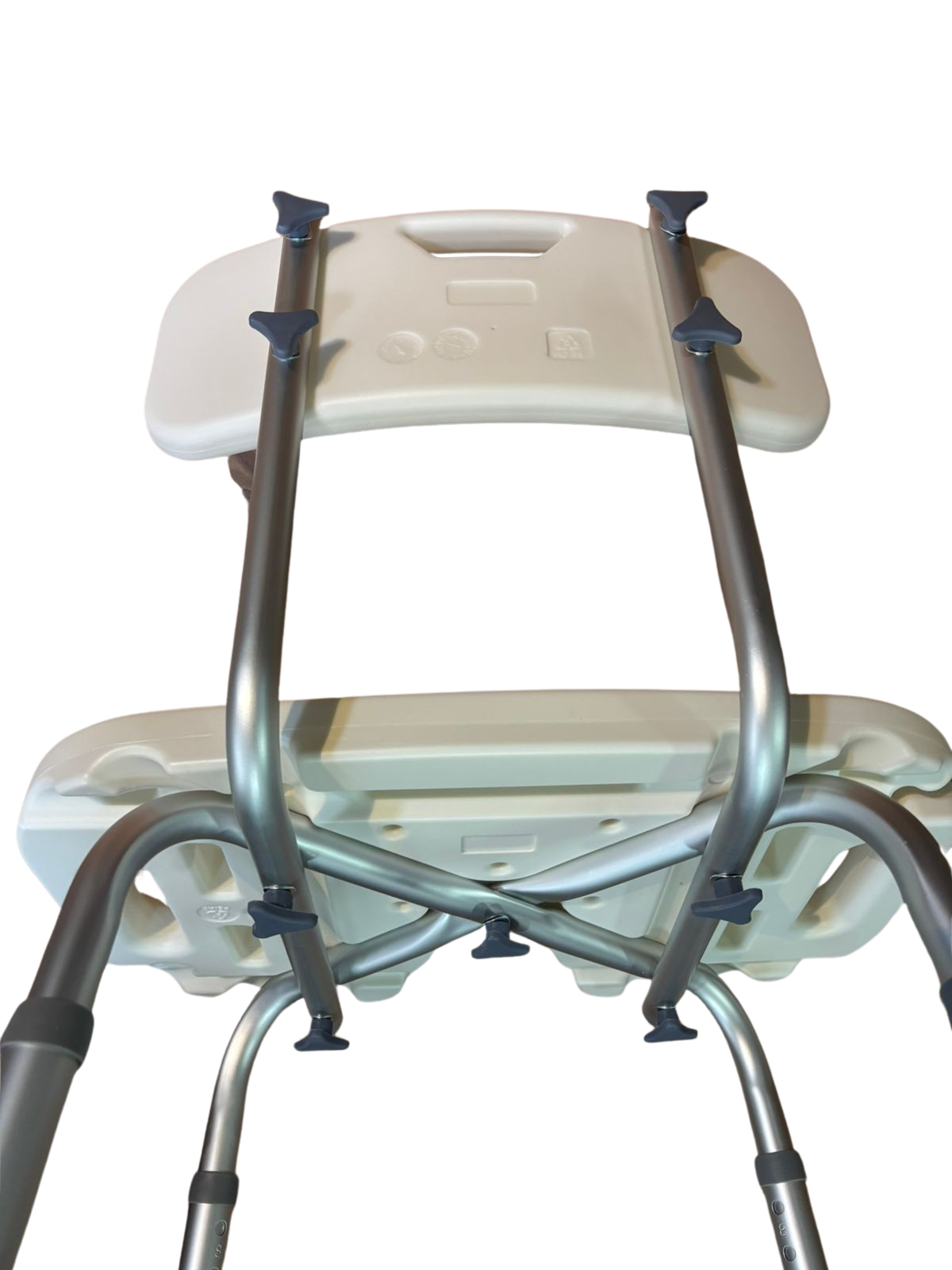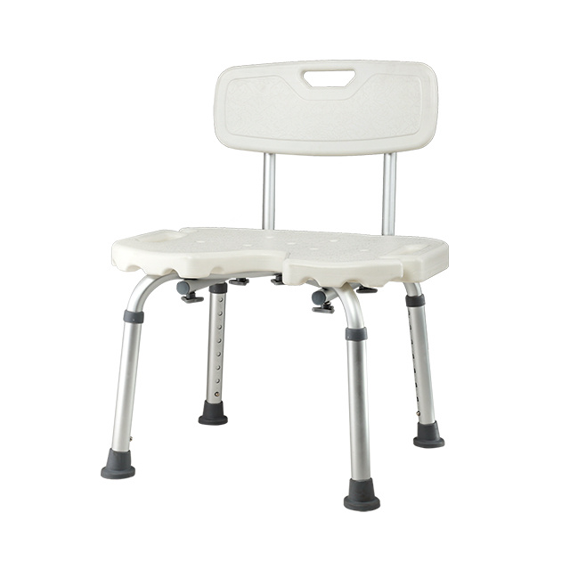 Silla de ducha aluminio con rebaje y altura regulable. Respaldo removible y libre de herramientas para el armado